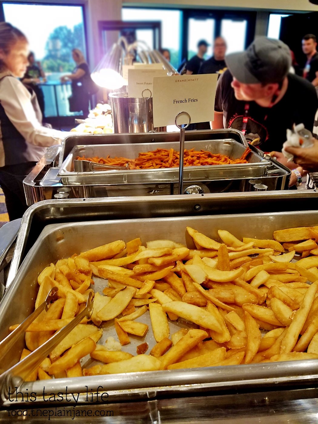 I didn’t try these. French fries in a warming tray did not seem appealing to me. You could drench these in cheese sauce. There was also a table with tortilla chips and some spicy ass guacamole and another table with veggies and dips (like hummus and ranch dressing).