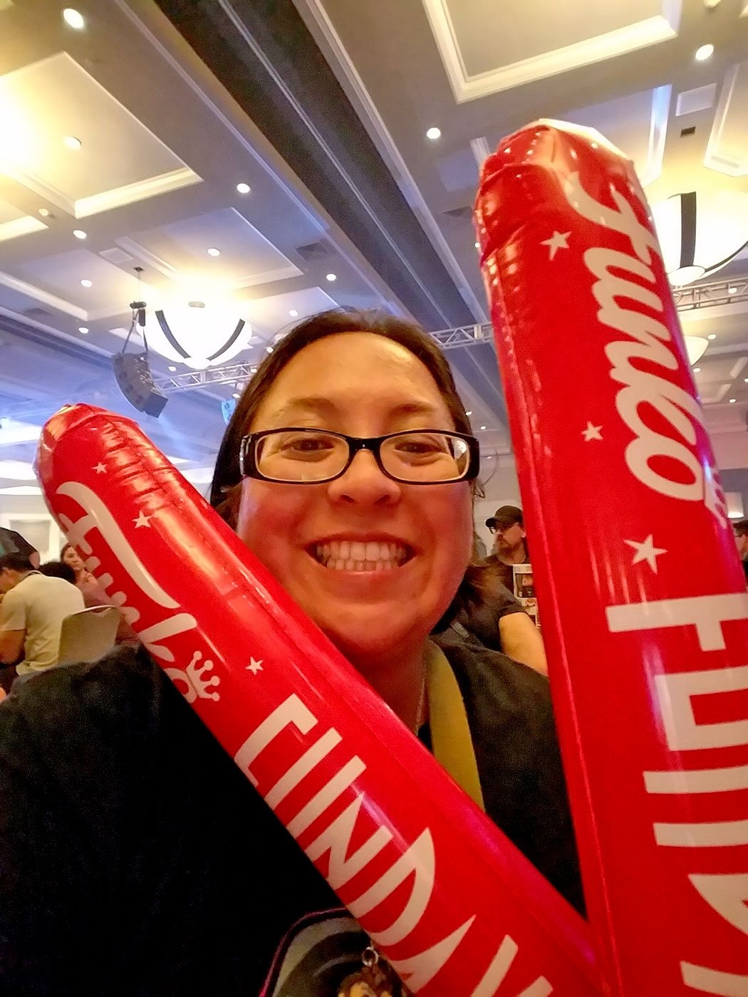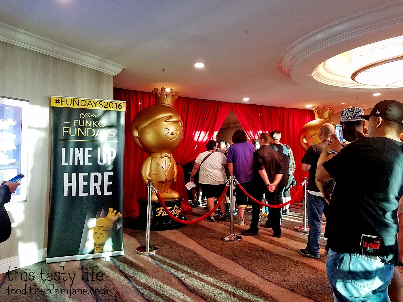 What is Funko Fundays? Think of it as a big party that Funko hosts to celebrate it’s collectors. It’s an event they put on with lots of food, entertainment, awards to members of the Funko Funatic forum, and lots of giveaways! You don’t buy anything at the event – the only thing you purchase is your ticket to get in – everything else is included. Above is just part of the line for Fundays. We lined up around 6PM and waited for about an hour to get inside. It was held at the Hilton next to Seaport Village last Friday night during Comic Con.