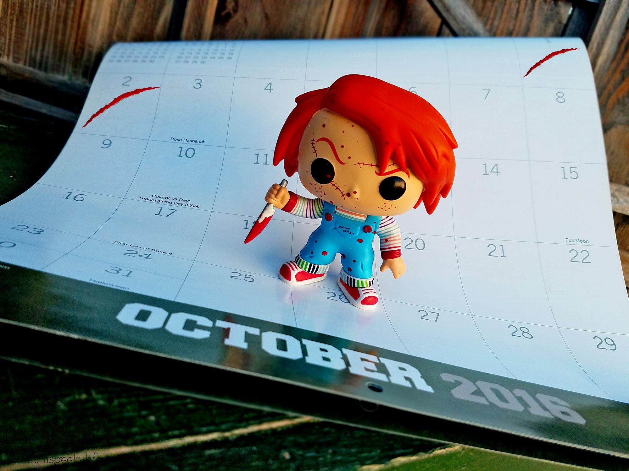 And finally for “Countdown to Halloween” I used a bloodied up Chucky doll slashing out the days until Halloween. This is one of Jake’s pops since I think Chucky is creepy as hell.